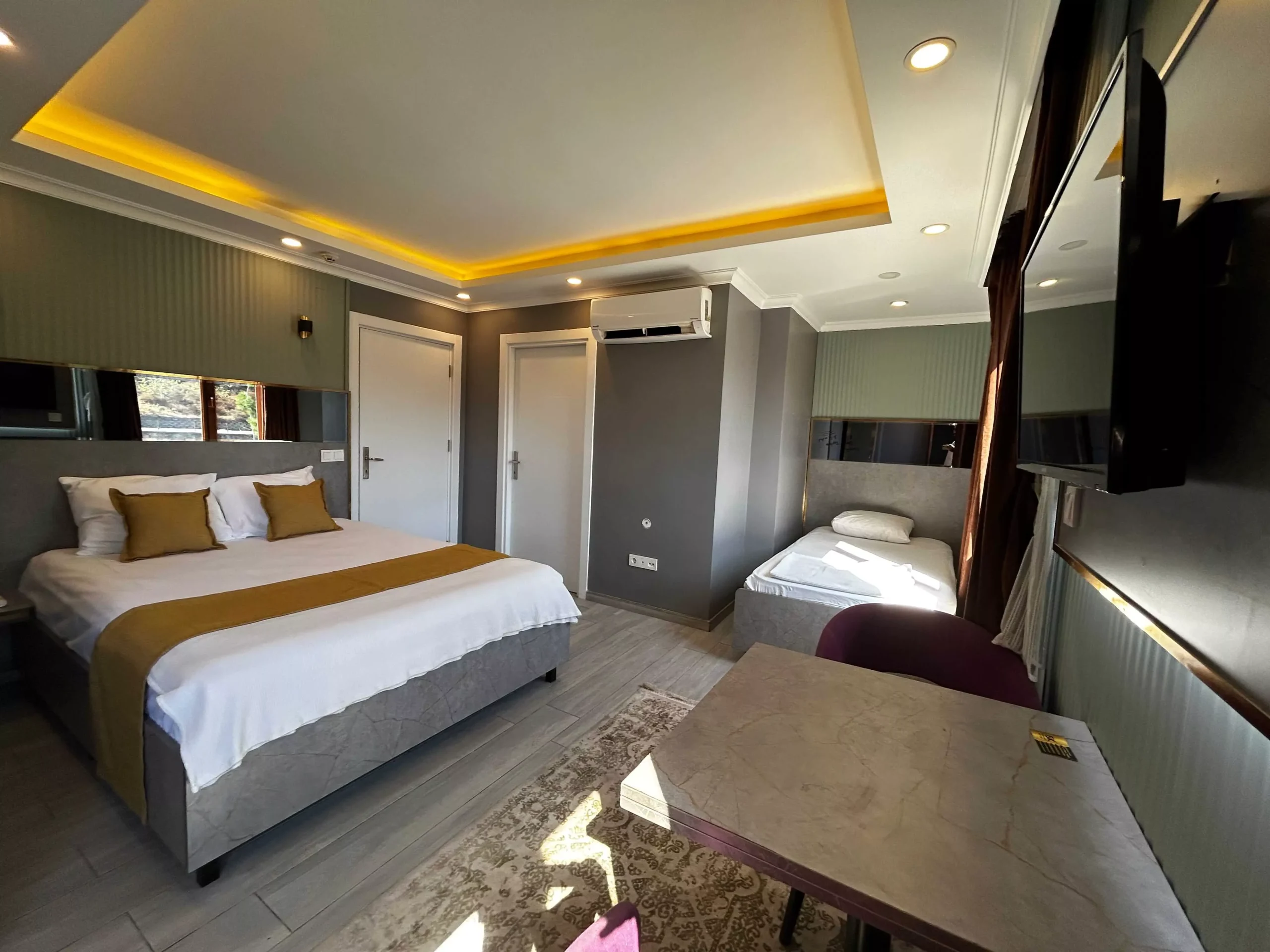 Küçükbakkalköy günlük kiralık daire arayan küçük aileler ve arkadaş grupları için Triple Room, geniş ve rahat bir konaklama alanı sunar. Küçükbakkalköy günlük kiralık ev alternatifleri arasında 3 kişilik konaklama imkanı ile öne çıkan bu odamız, hem ekonomik hem de konforlu bir seçenek sağlar.